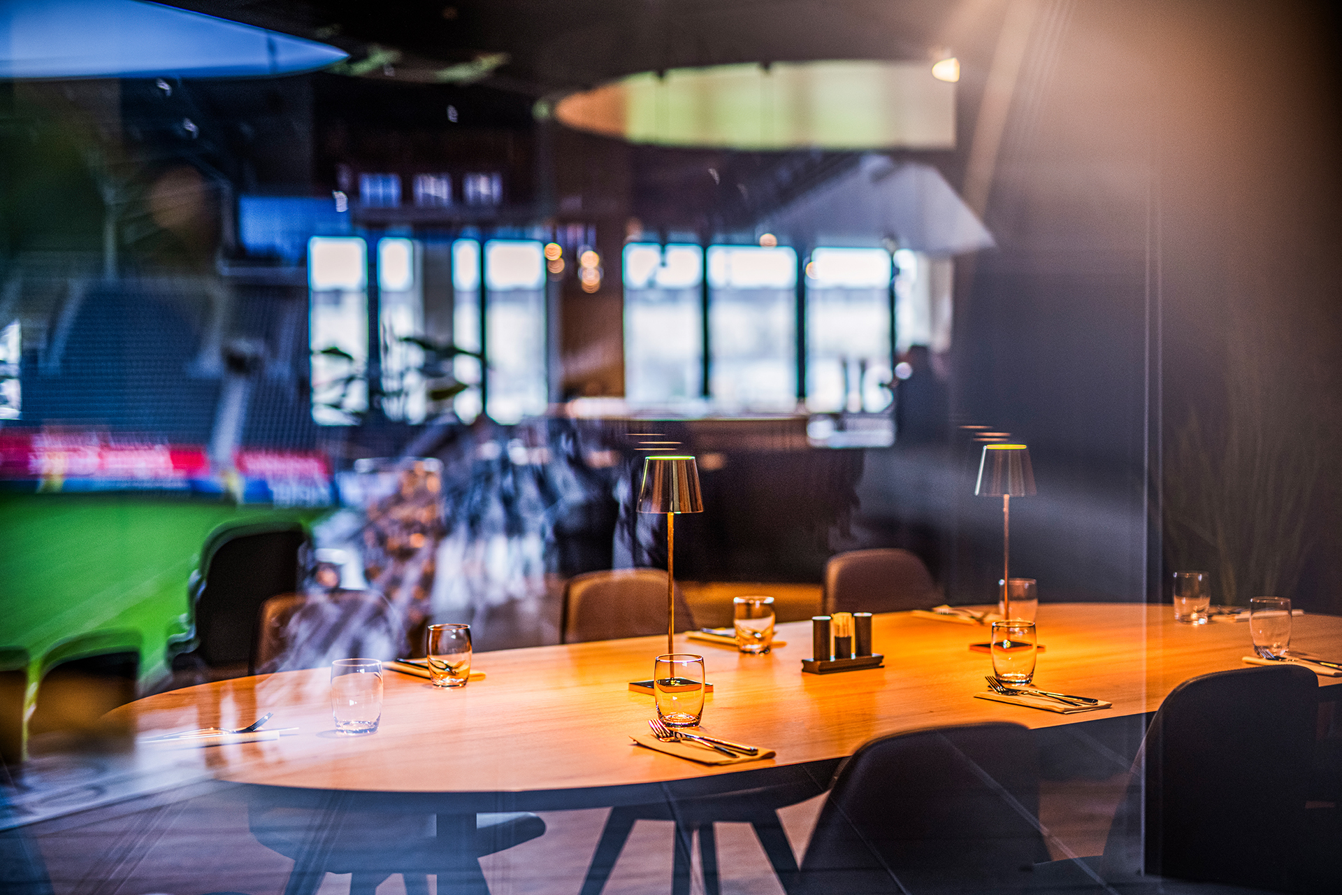Mit einem unvergleichlichen Stadionausblick heißen wir unsere Gäste im Restaurant Dunkelschwarz, im 1. Stock der Linzer Raiffeisen Arena herzlich Willkommen.