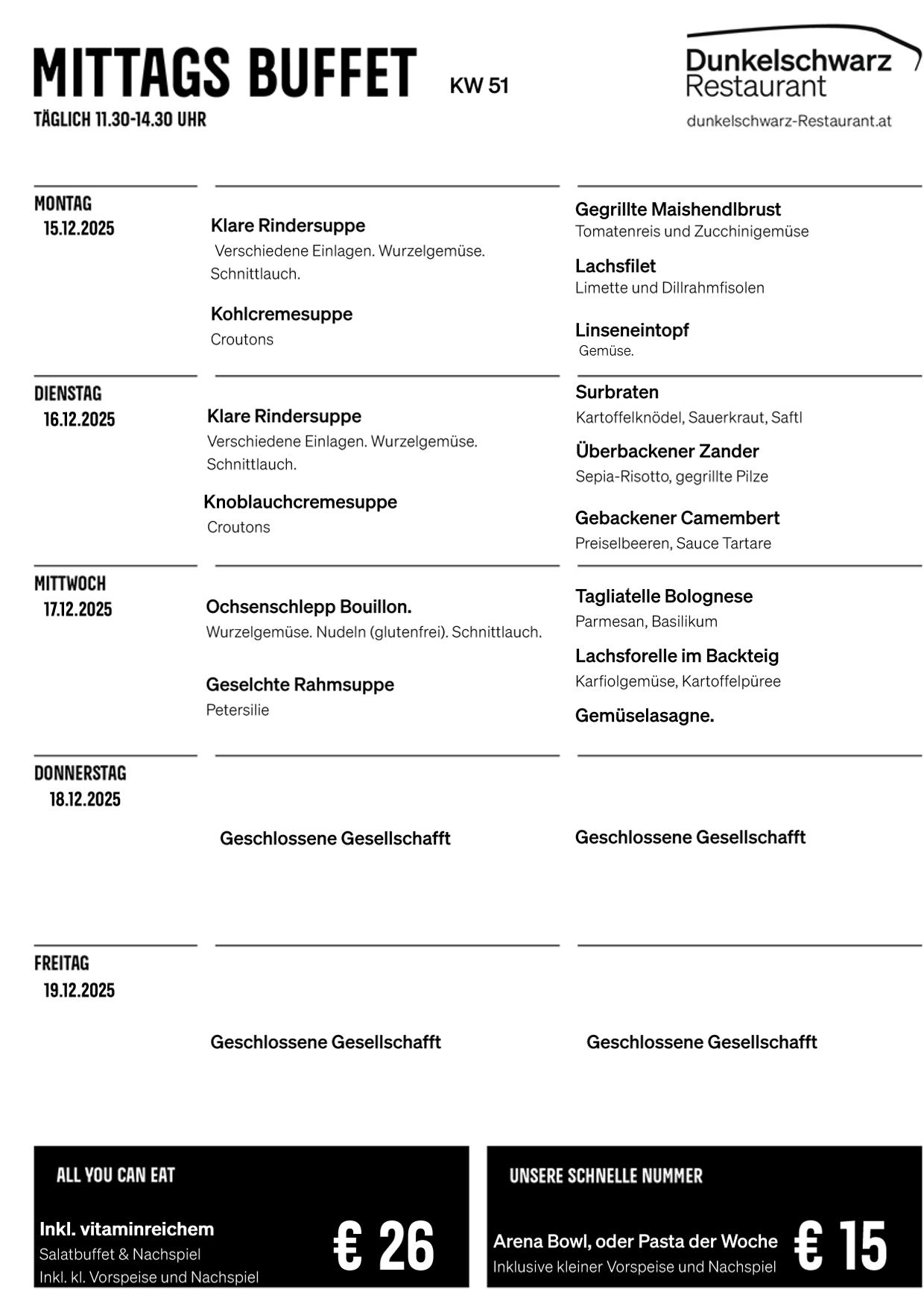 Buffet 11.30 – 14.30 Uhr | Snacks 14.00 – 18.00 Uhr